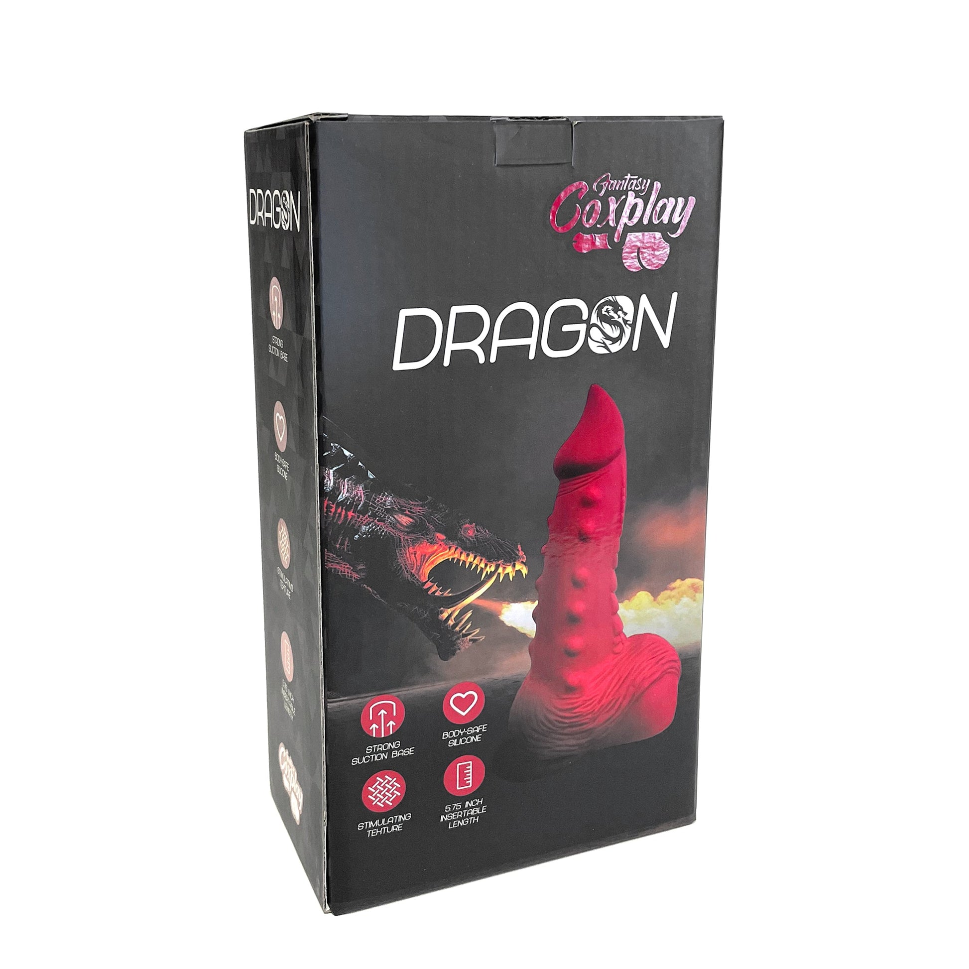 Our Dragon Cock Fantasy Dildo is exactly what you've been looking for. A dragon dick with pleasure nubs on the generous shaft of the penis, with nice big balls and a suction cup base for harnesses or for hands-free play. Explore your fantasy fetish for a cold-blooded lover when you ride the Dragon Cock! This Dragon Dildo has an insertion length of 5.75 inches and a maximum insertable diameter of 2.25 inches. The strong suction cup base is harness-compatible and can attach to almost any hard surface for endless possibilities of play. So soar to new horizons of kinky fantasy pleasure with the Dragon Cock Fantasy Dildo!