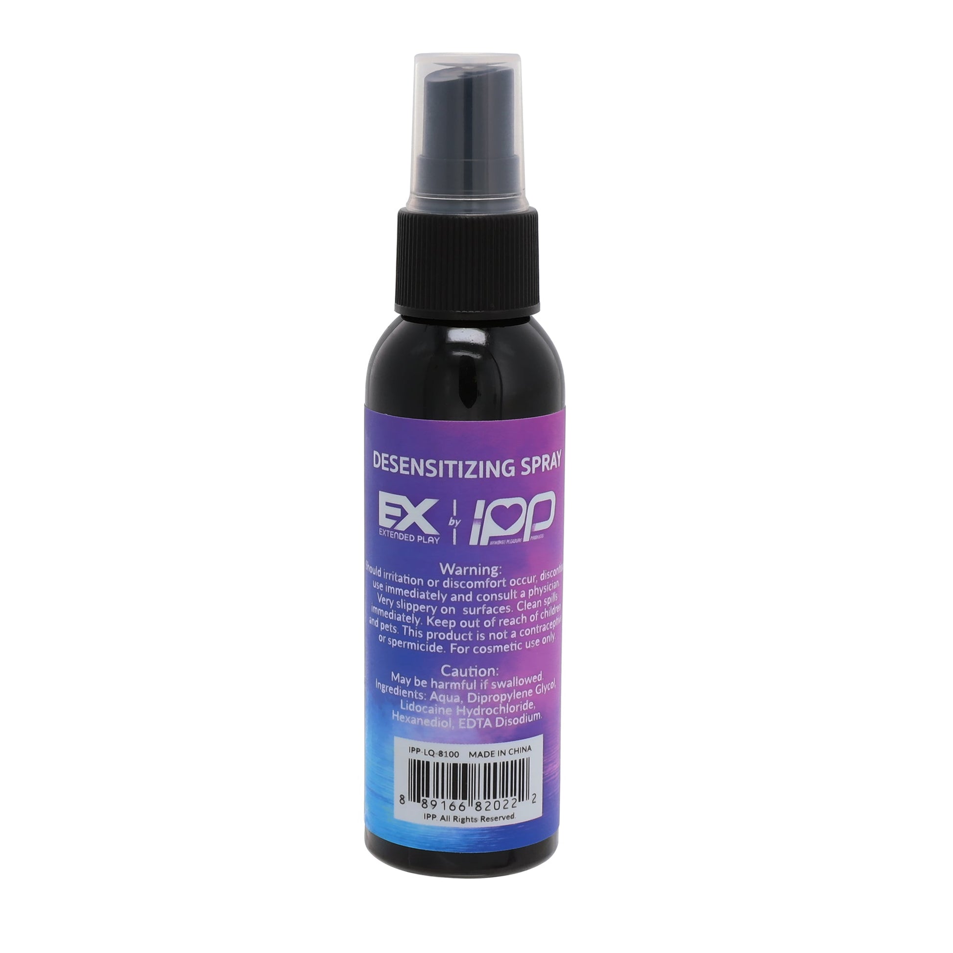 EXTENDED PLAY is a desensitizing spray designed to help men last longer and enhance intimate moments. Formulated with Lidocaine Hydrochloride, it gently reduces sensitivity to support prolonged performance. This 4 fl oz (118 ml) spray is easy to apply and intended for cosmetic use only.
