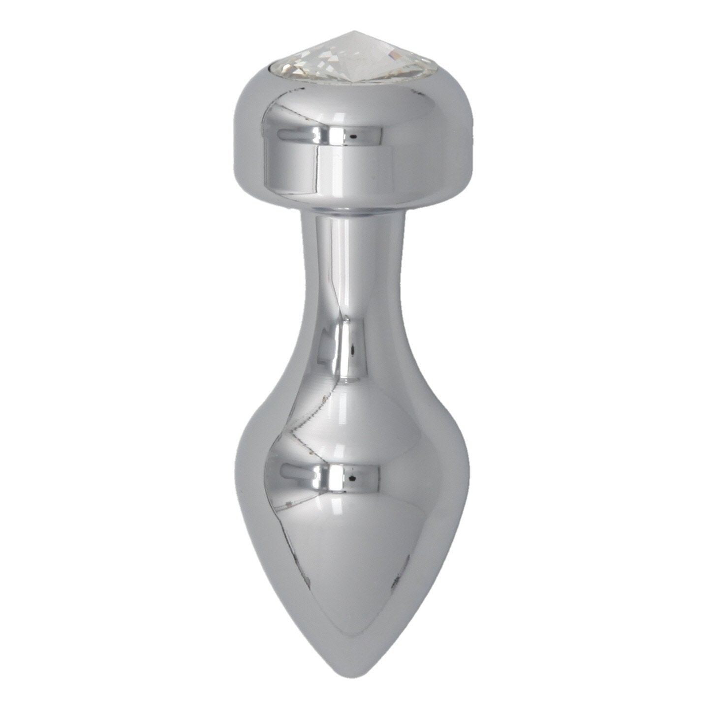 Alloy Butt Plug with Clear Jewel, Stainless Large
