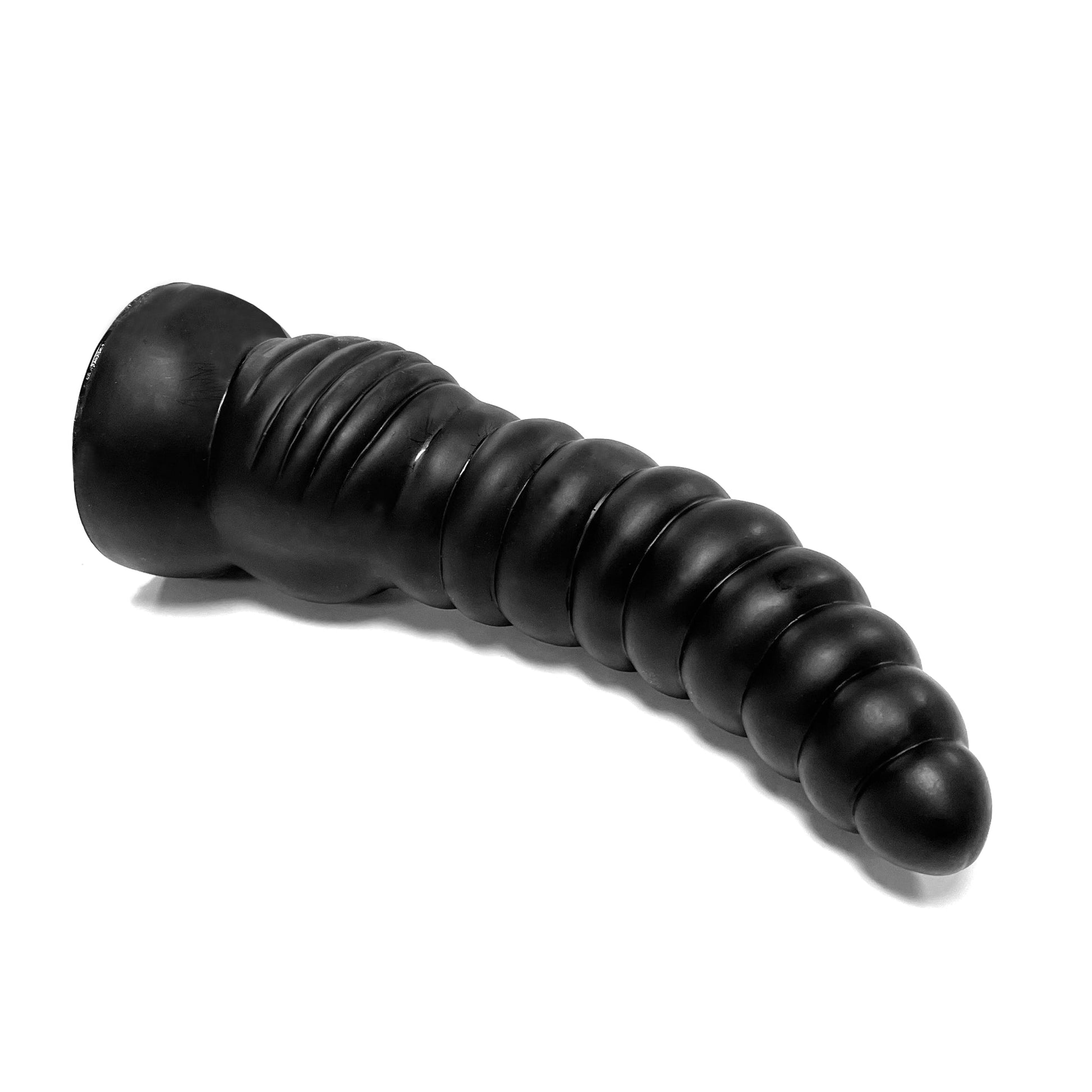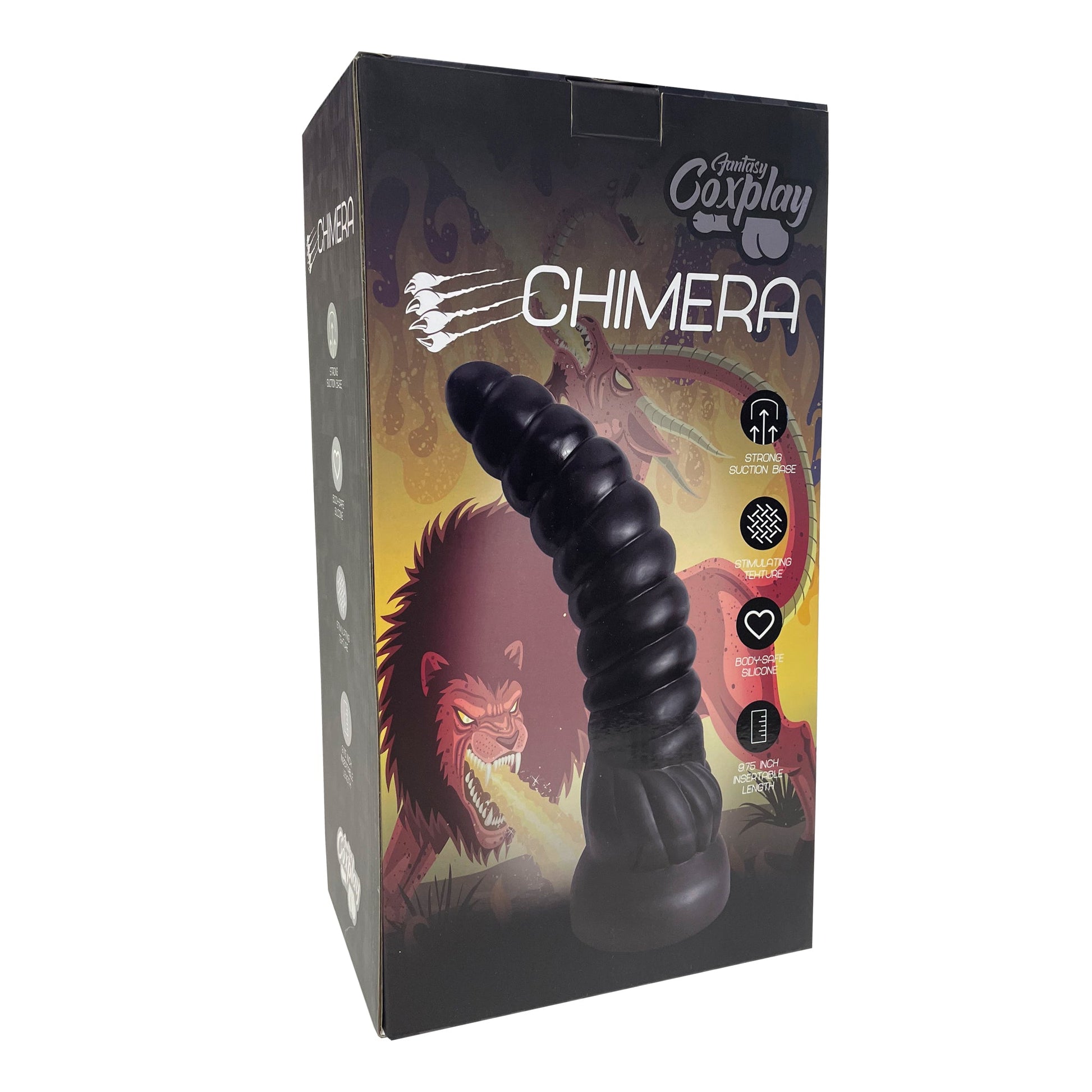 The Chimera's tail of a serpent makes for a most stimulating shape - and conjures erotic mythical fantasies! Experience breathtaking penetration from the segmented rattle-like tail of the Chimera. Feel each of the 10 segmented rings that taper slightly toward the tip and widen toward the contoured hairline. The slightly curved PVC shaft leans beckoningly toward you, promising intense stimulation with its texture and girth. Enjoy 9.75 inches of insertable length with the widest diameter measuring 3.5 inches. The strong suction cup base measures 3.9 inches across and can stick to most solid, flat surfaces for intense throes of mythical fantasy play. Make your beastly fantasies come true with the Chimera!